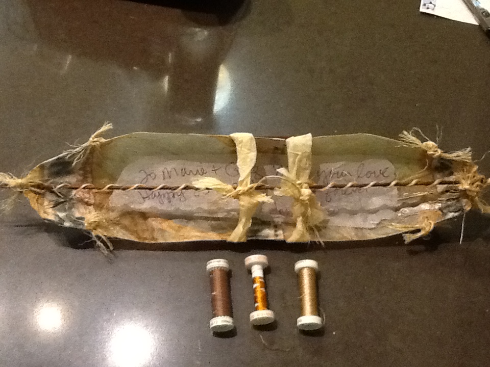 As we saw at one of Jennifer’s exhibits, her boats are usually hung from a ceiling, drifting with the currents of air. I had an idea. First, I would fashion a “rope” out of embroidery thread.