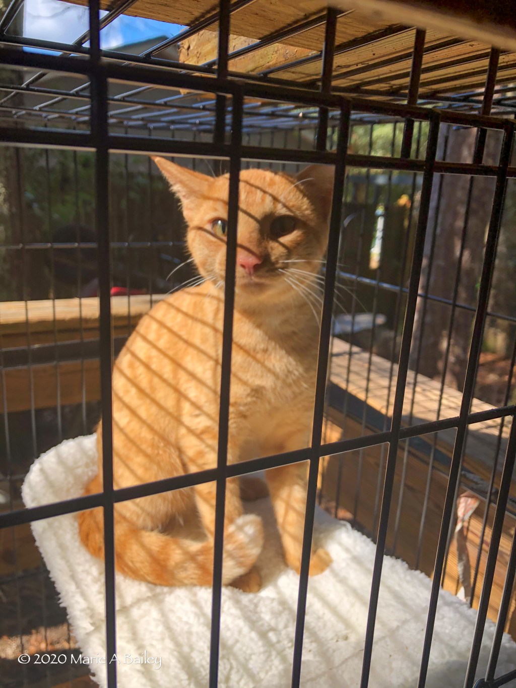 For those of you who missed the excitement of my last post, you can read it here. In the week since I wrote that post, we managed to get Raji confined to our garage. Poor little guy had hurt his right front leg jumping down from the roof of our shed. We didn’t want him gallivanting around, making it worse so we coaxed him in with food (of course!) one evening and shut the cat door.