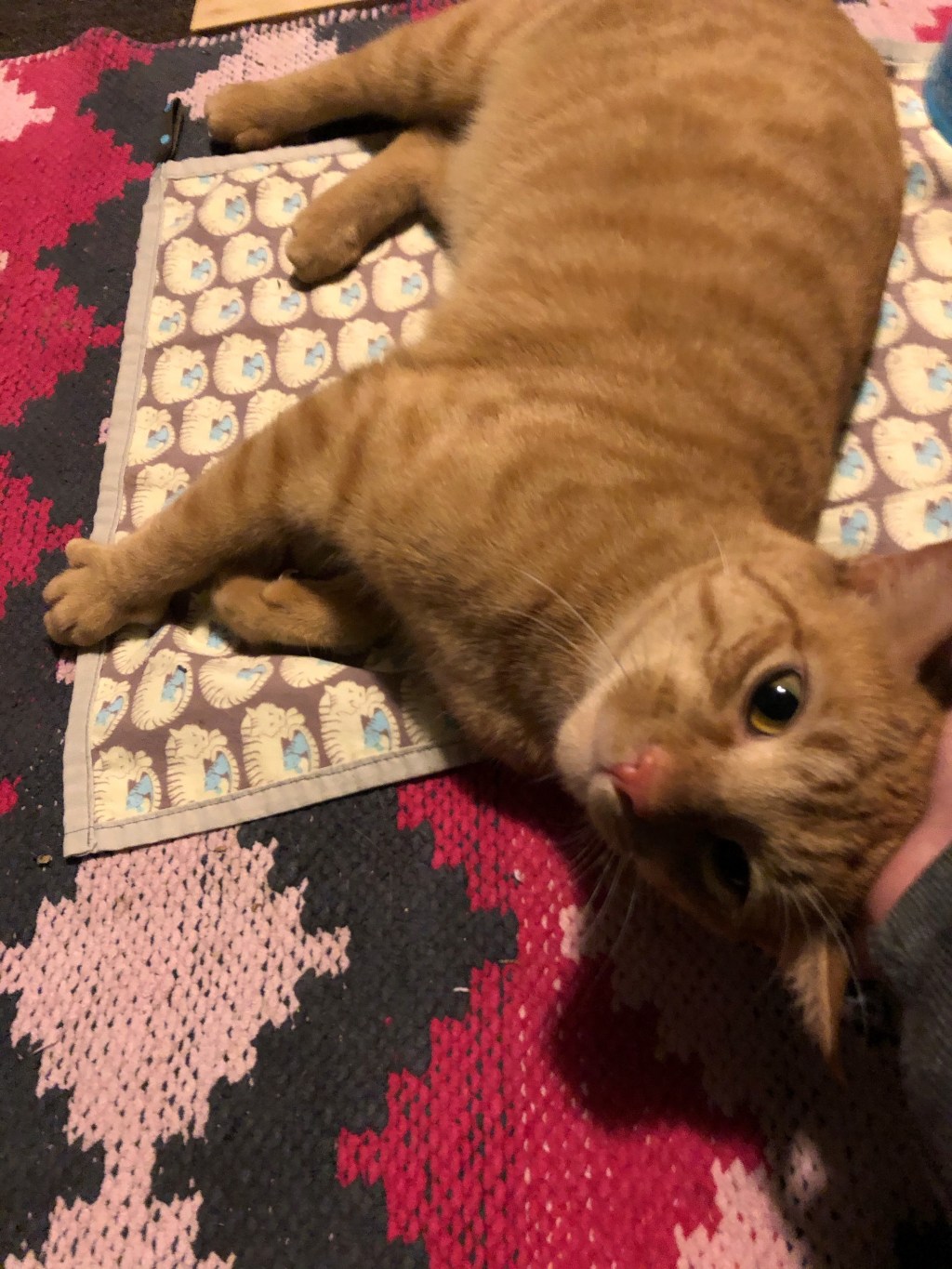 Can you see his sharp little claws in the last photo? Right now that’s the main reason I want to get him back to the vet: nail trim! Besides being such a cutie-patootie, he is still allowing me to pick him up, but only when I’m sitting on the floor and I follow this procedure: