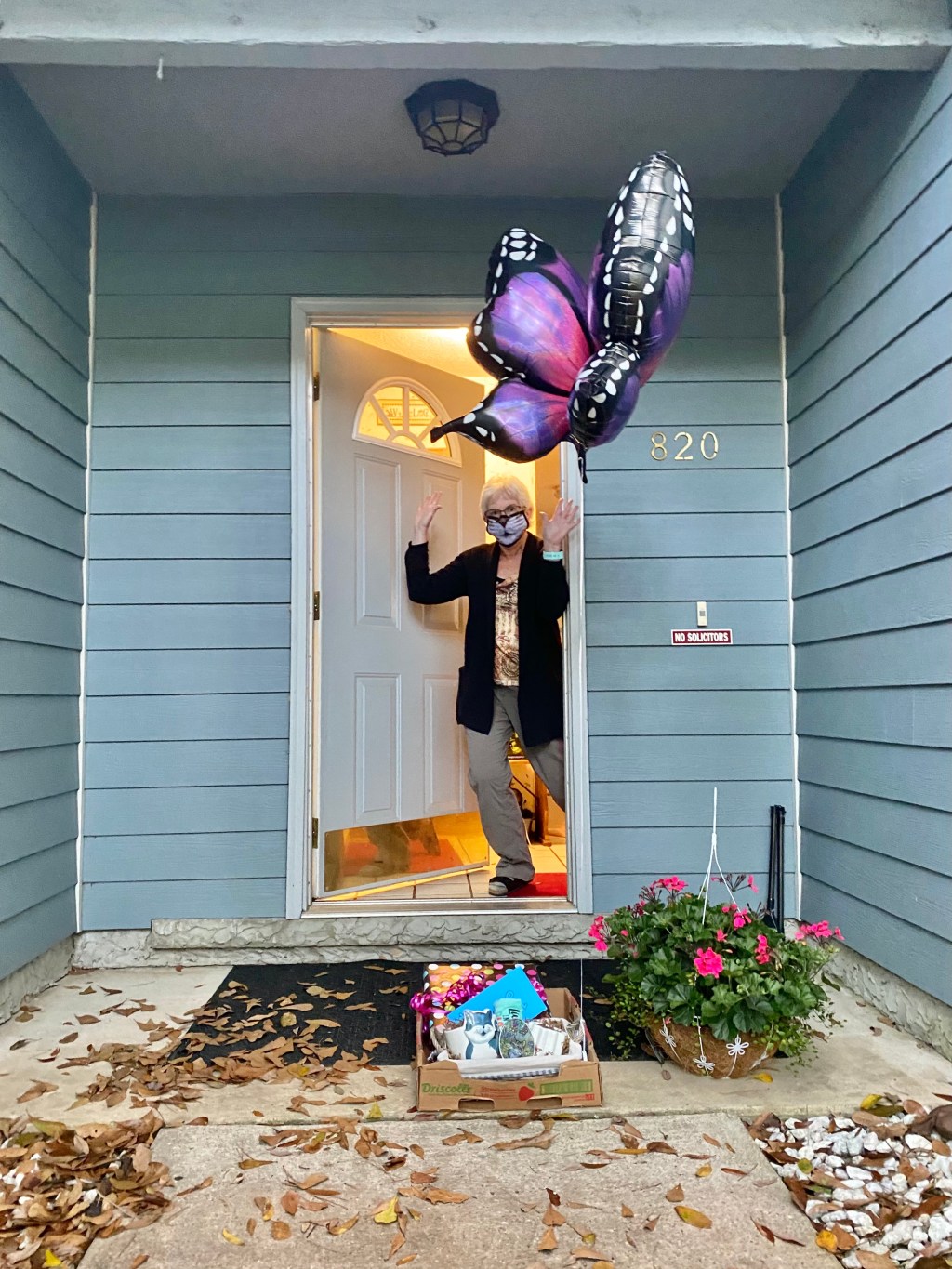 Here’s a photo of me feigning surprise at the delivery of presents by one of my coworkers. (She was kind enough to send me a text ahead of time.)