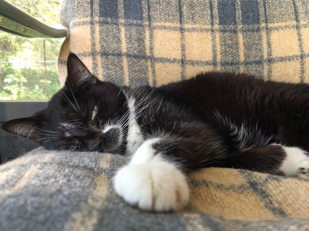 But she’s doing good. She really is. She’s peeing and pooping in the litter boxes more often than not. She’s steady on her feet and generally trots to her meals (food is her reason for being). She’s still sleeping a lot, but not when there’s food around. I don’t have high expectations for her, as she does have chronic kidney disease, but she really seems to be enjoying a better quality of life than she was a month ago. We are grateful.