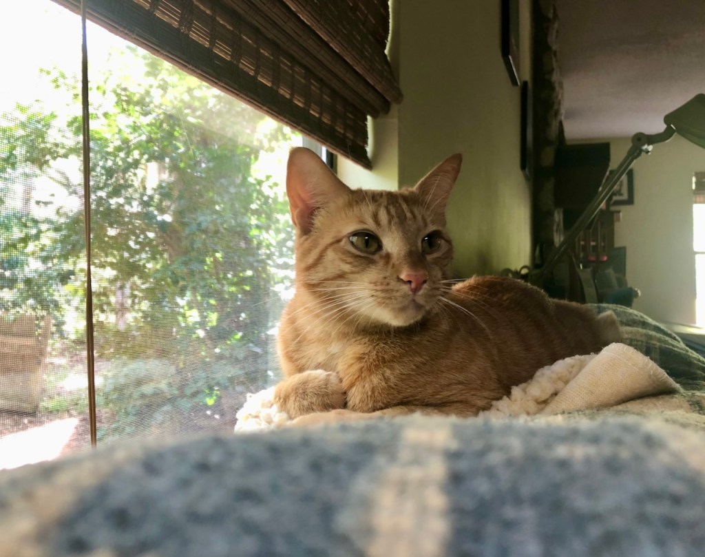 Thank you, Zazzy! You know, Raji actually does not get into trouble. But I call him the Orange Terror because he’s very playful and always wants to play with the two old farts (not us, our other two cats). Sometimes the other two are into playing, sometimes not, and often Raji persists by jumping at them and chasing them. They don’t think it’s funny but we find his antics hilarious.