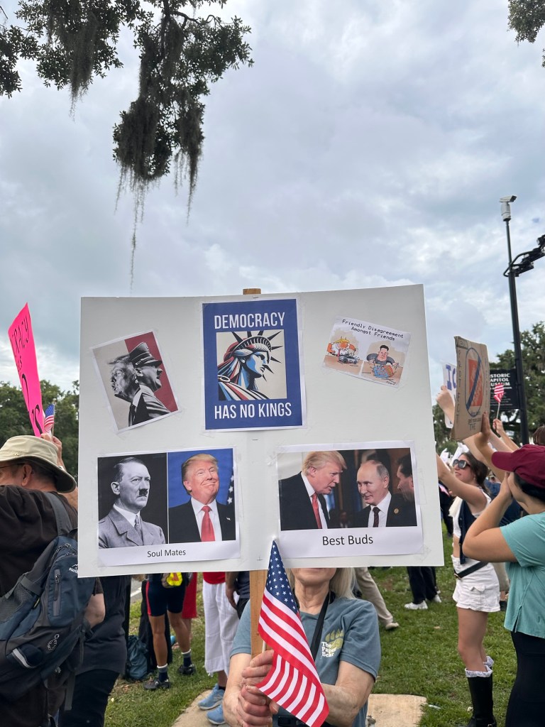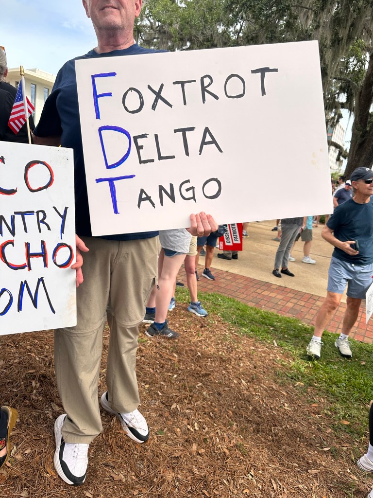 According to my local newspaper, thousands came out in Tallahassee to protest. We were impressed, not just with the size of the crowd, but also with the almost endless stream of cars honking to show support.