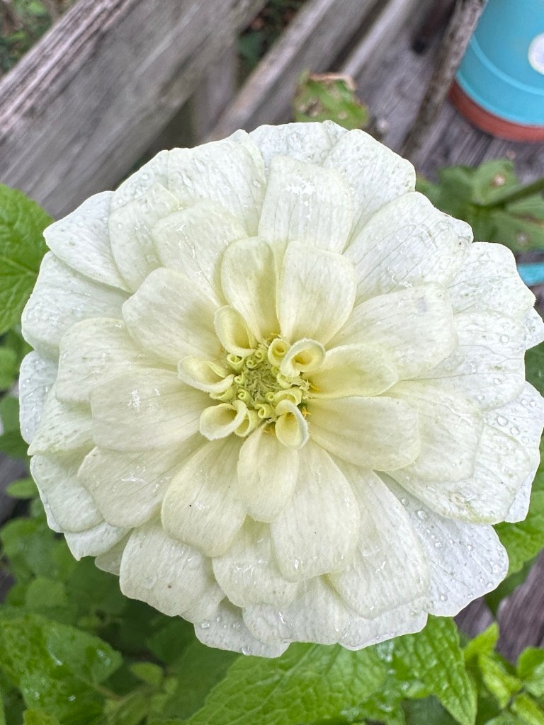 A new zinnia popped up after the pink one (see the pink one here). I started sharing photos of the bud on Instagram and then got distracted. Next thing I knew, the bud had fully bloomed.