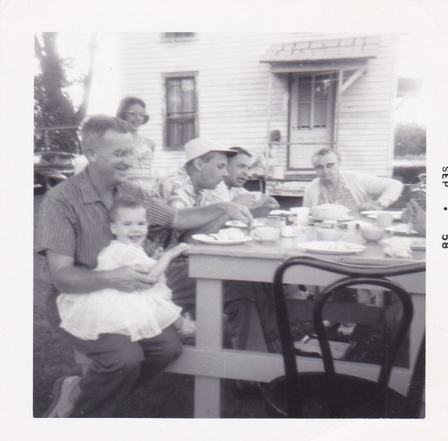 I do agree with my sister that I had some fun times with my dad. He and I both took perverse pleasure in Grade-B horror films. You know, the ones produced by Hammer Film and that usually only showed during theater matinees or at 2 pm on the TV. And, yes, I have a memory of finding him on our neighbor’s porch (because we didn’t have a porch), sitting out the hot summer afternoon, sweat glistening on his dark hairy arms. But when I handed him a piece of paper and pencil and demanded, “Draw me a man,” he compiled. Even gave the man a corncob pipe to smoke.
