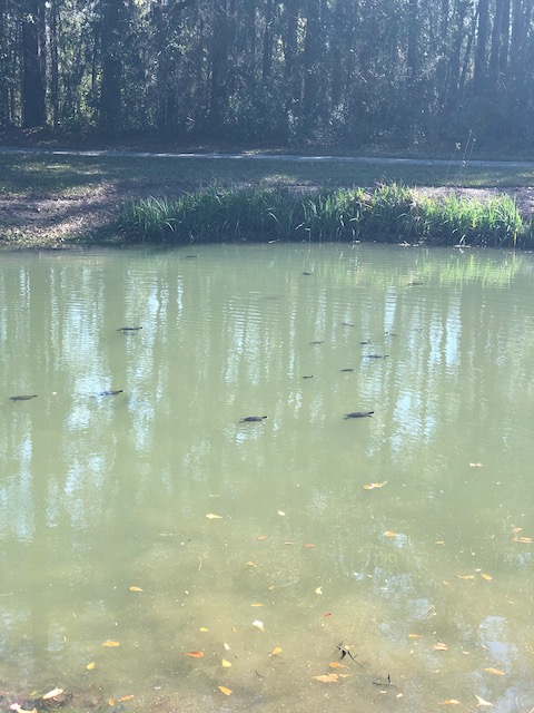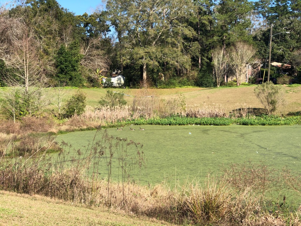 Here’s two views of one particular pond called “Lake Le Marc.” Seriously. It’s a stormwater pond facility (my husband, the engineer, says) but if Tallahassee wants to call it a lake, who am I to argue? You’d have to zoom into the photos to see all the plastic bottles floating on the surface. If you can’t zoom, just trust me. They are there.