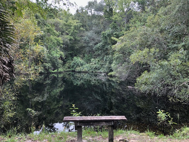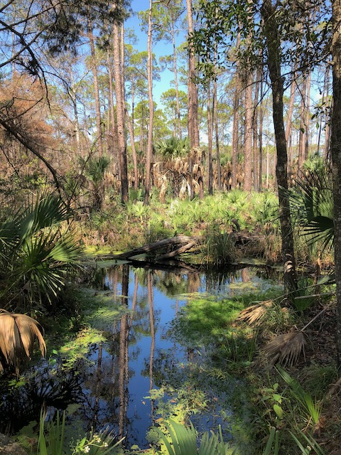 Yes, indeed, you can’t have Florida forest bathing without a swamp. The afternoon light was perfect, giving this swamp an ethereal feel. I half expected fairies to peek out from the trees. My husband said the only thing missing was a water moccasin but that was fine with me.
