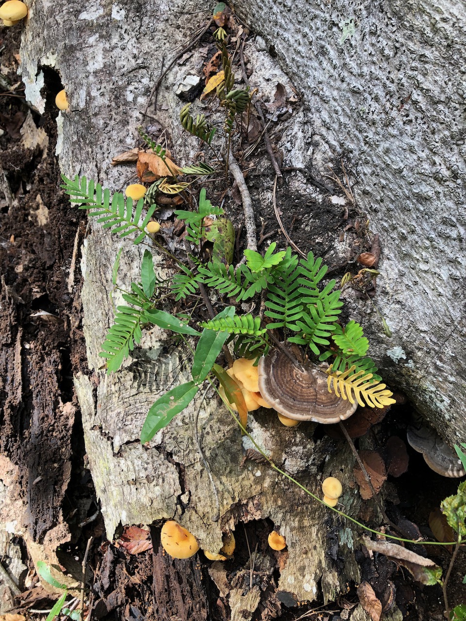 Talk about hanging in there! This tree doesn’t want to let go and I don’t blame it. It’s a lovely environment, full of dappled sunlight and rich vegetation. Worst case scenario: it’ll become a home and food for critters and birds so life will continue.