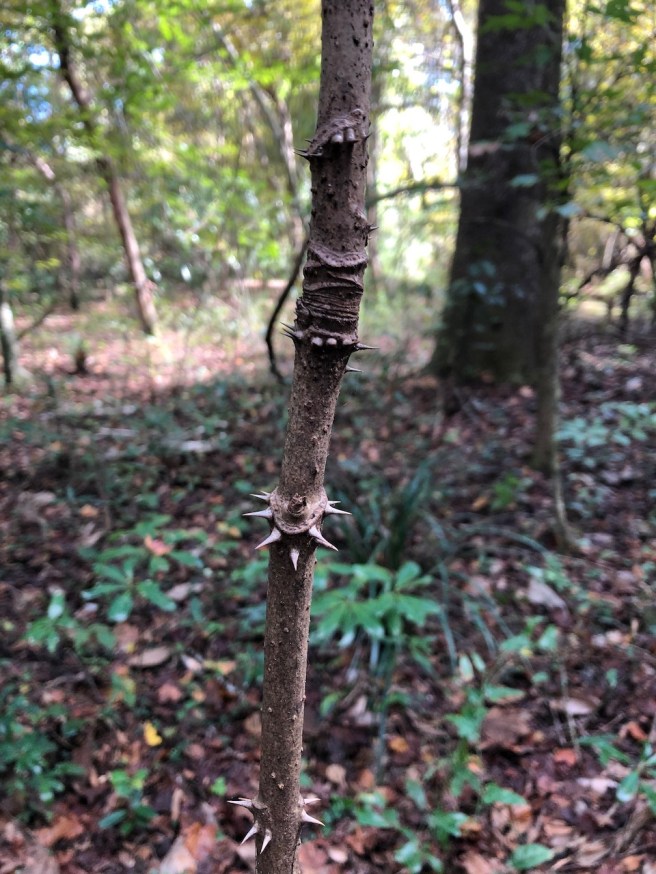 Now this is something I wouldn’t want to blindly grab. Greg says it’s a “devil’s walking stick.” It can be quite beautiful when it’s in flower, but it’s November so no blooms.