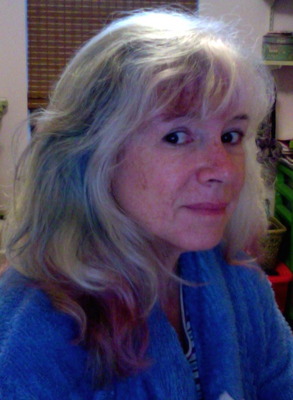 Yes, I now have blue hair as well as pink. In the right light, my husband says I look patriotic. It’s just a streak of blue, but it goes well with my favorite bathrobe, don’t you think? Oh, and this is what my hair looks like when I don’t use a flat iron. Kind of all over the place. Amazing how much work I have to put into my appearance just to be able to leave the house.