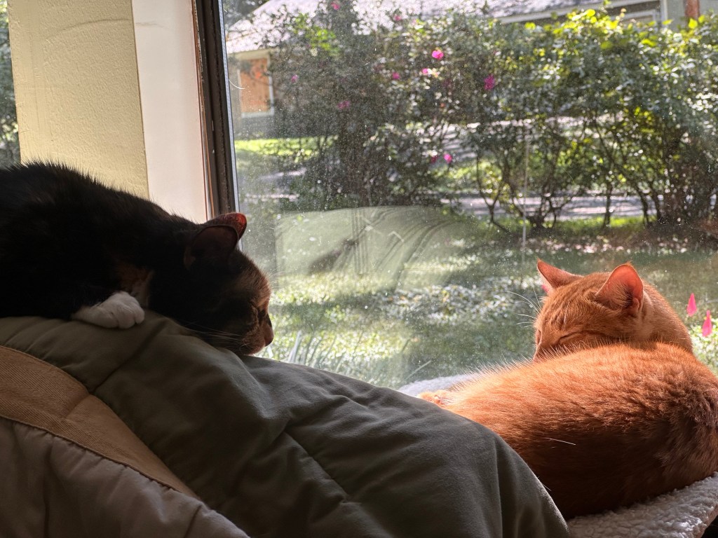 On the upside, I’ve been busy with living, which for me means knitting a lot and working on our gardens when the weather allows. Lately, the weather has accomodated outdoor work here in northern Florida. Also, I’ve started bicycling again, about once a week. And I still go to yoga classes twice a week and the gym twice a week.