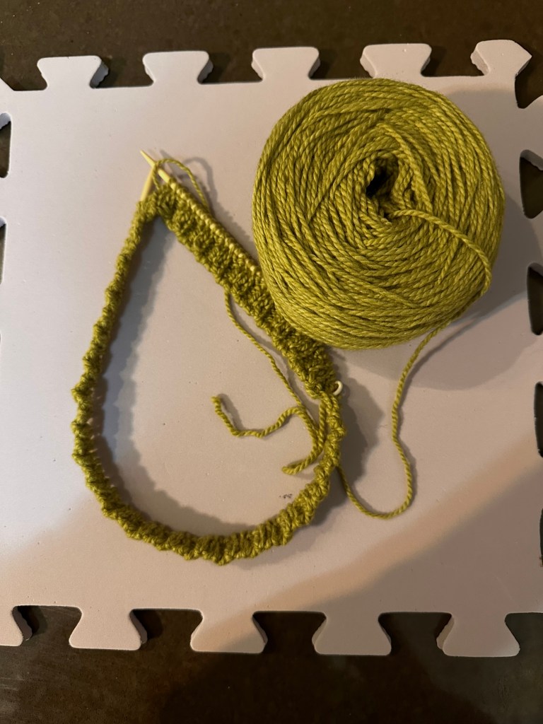 I presume this is the top of the hood. As always, I made a couple of boo-boos. Since this is my first MKAL, I’m giving myself the grace to just continue knitting and, worst-case scenario, I’ll keep the hood for myself.
