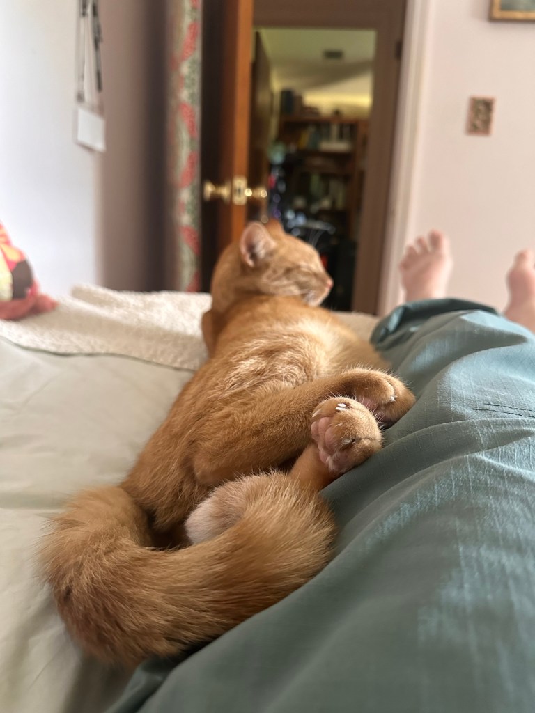 But for our cats, I’d be in a sorrier state. This guy here … we are now calling him Snugglebunny. He snuggled up to me all on his own. I’m so glad I was able to snap a picture and record the event.