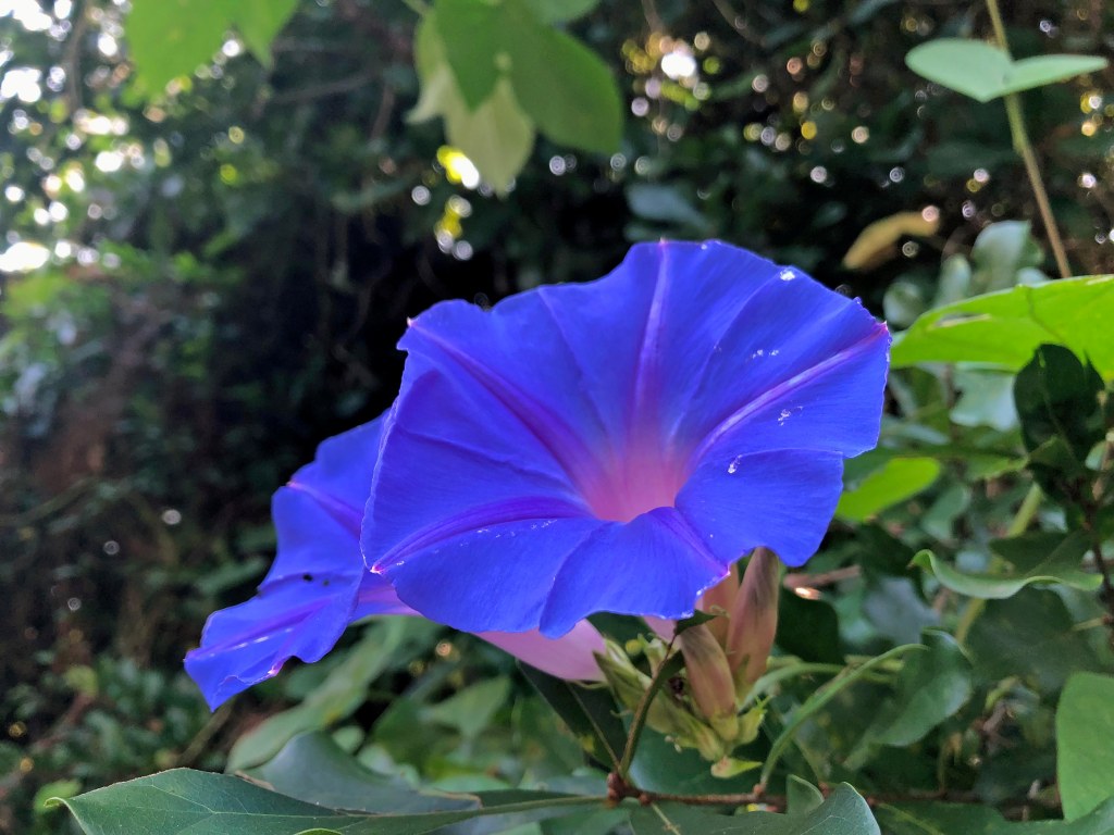 This morning I walked in my neighborhood and found a wonderful cluster of morning glories.
