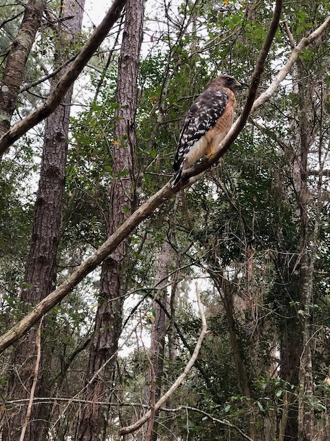 I stopped dead in my tracks, really expecting the hawk to fly off. After a few seconds, I decided to risk a few photos, as long as I took time in between to enjoy the sight with my own eyes.