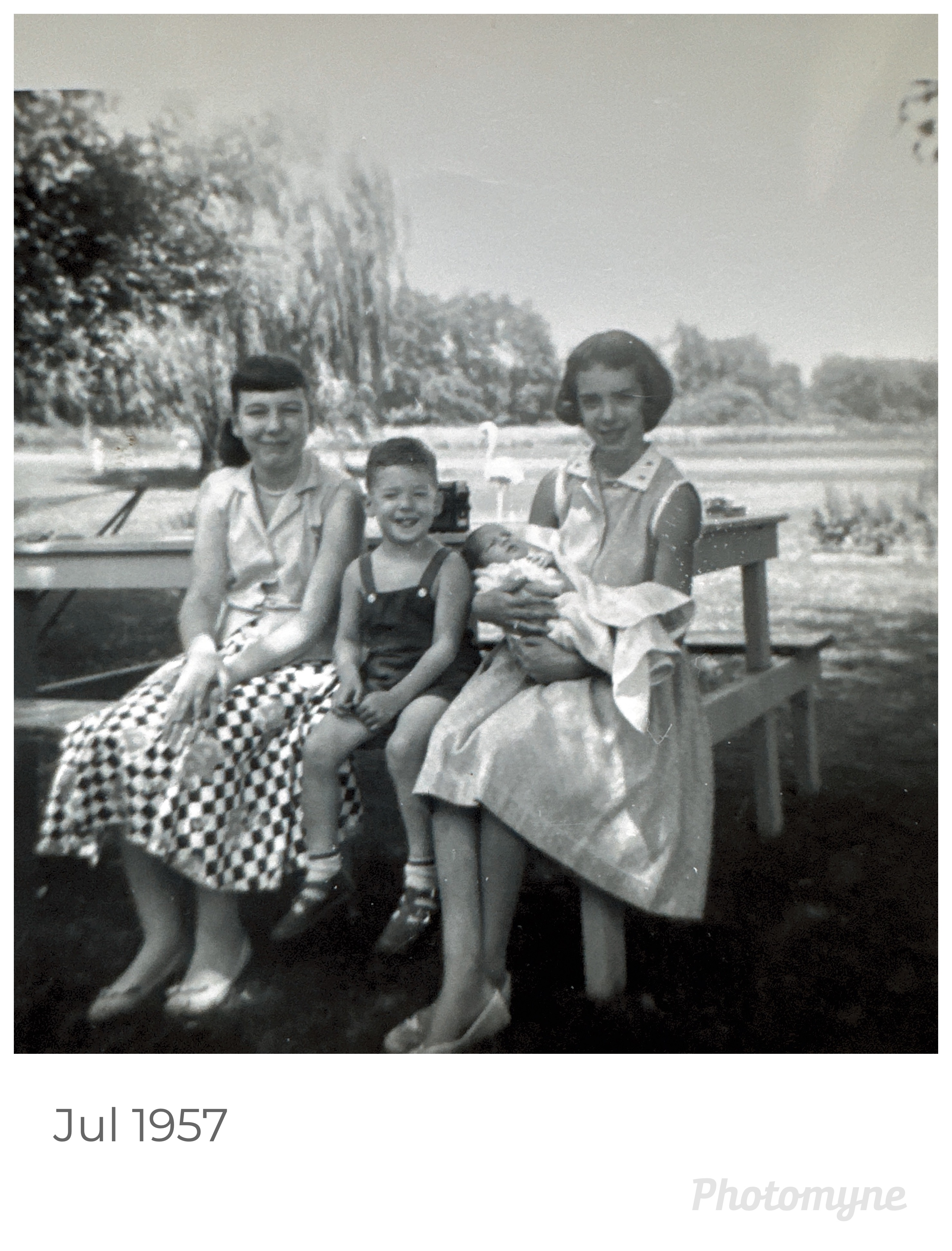 My brother didn’t show up until August 1954, then me in June 1957. I once made the mistake of asking my mom if she had planned our births so that Shirley and Charlotte would be old enough to babysit me and my brother. She admitted that she hadn’t expected my brother and me. She hadn’t planned our births and, she added, something like abortion wouldn’t have occurred to her because “it just wasn’t done back then.”