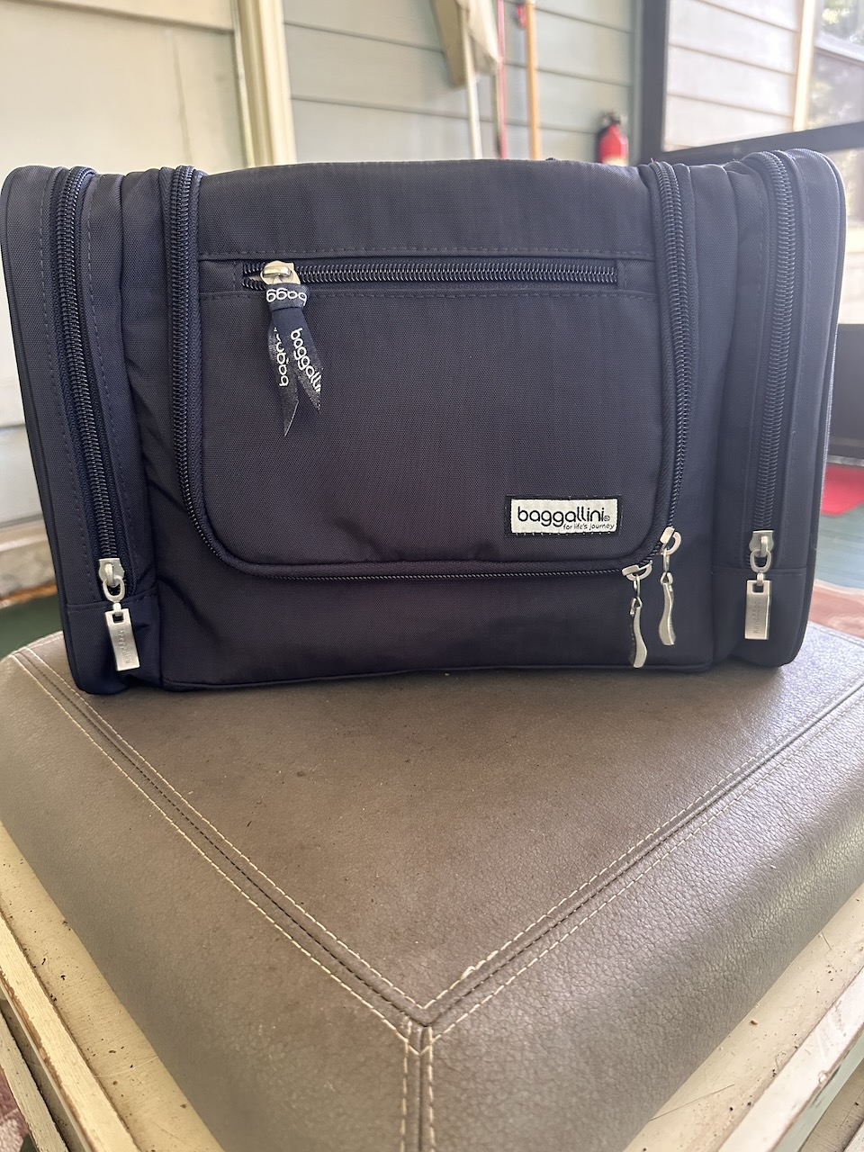 I have a fetish for Baggalini. I have several Baggalini items, from a fanny pack to a backpack and a few bags in-between. I don’t use these bags everywhere, all at once, but I admire their construction, durability, and numerous zippered pockets so much that I can easily rationalize buying another. To wit, the toiletry bag which I did not need. The one I bought from REI about 30 years ago is still my go-to toiletry bag … and it’s purple.
