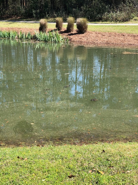 Here’s two views of one particular pond called “Lake Le Marc.” Seriously. It’s a stormwater pond facility (my husband, the engineer, says) but if Tallahassee wants to call it a lake, who am I to argue? You’d have to zoom into the photos to see all the plastic bottles floating on the surface. If you can’t zoom, just trust me. They are there.
